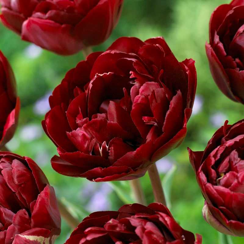 Tulipa Double Late ‘Midnight Magic’ is a rich and dramatic tulip variety, prized for its deep, velvety blooms in shades of dark burgundy to near-black. Its fully double, peony-like flowers are densely layered, creating a lush and luxurious appearance that stands out in late spring gardens. Supported by sturdy stems, these elegant blooms hold up well in both garden displays and cut arrangements. ‘Midnight Magic’ adds depth, contrast, and a touch of sophistication, especially when paired with lighter or pastel-colored tulips.
